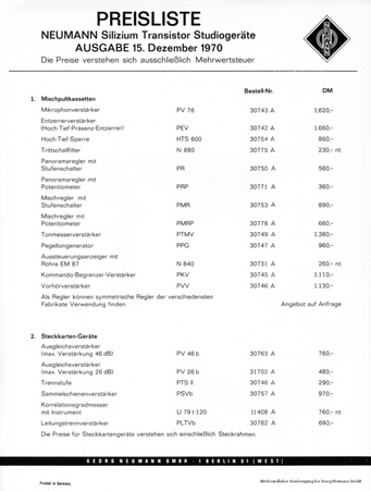Preisliste Mischpulttechnik (1986) Preisliste Mischpulttechnik (1963) Preisliste Mischpulttechnik (1970) Zurück zur Übersicht